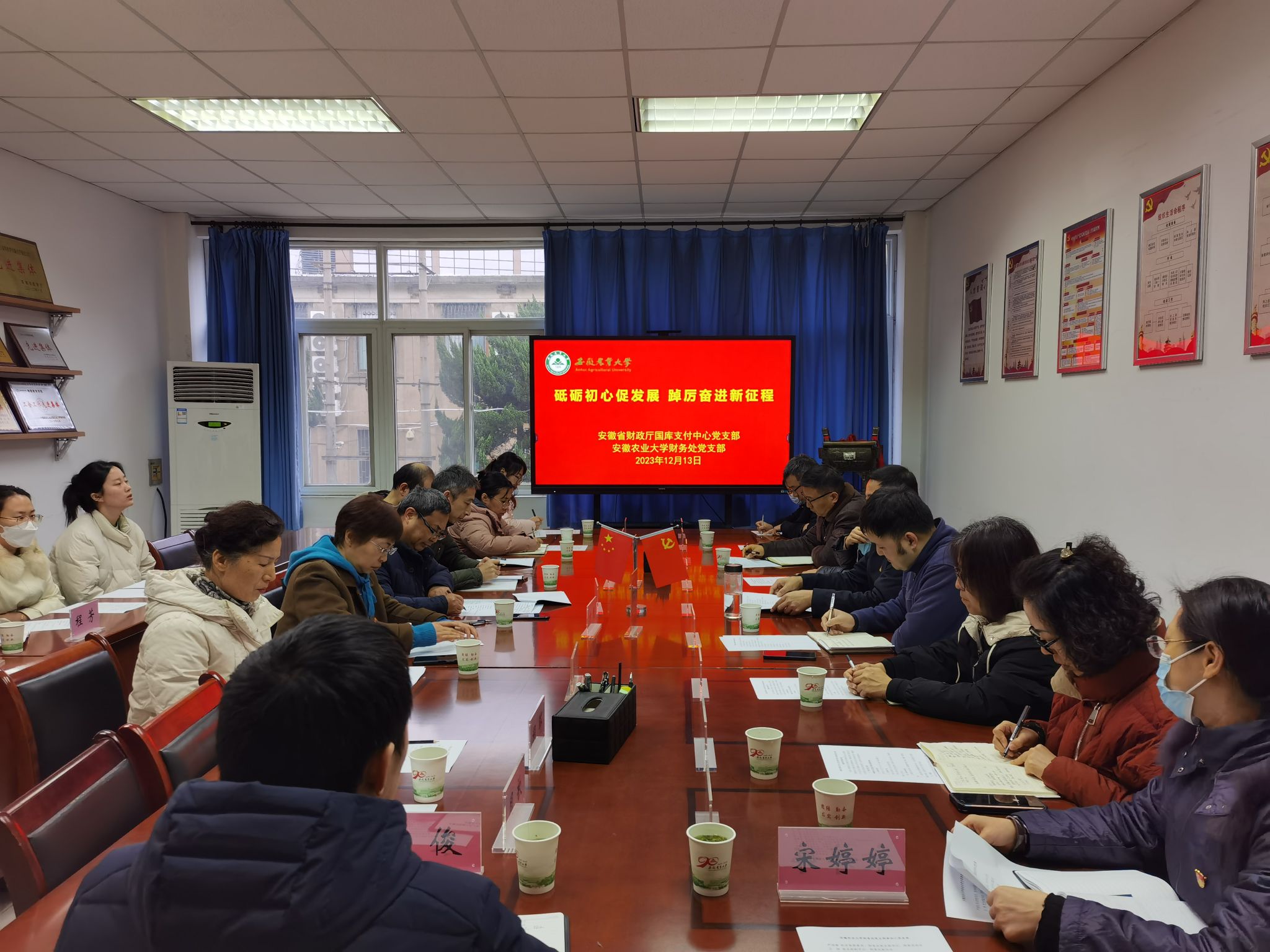 本网讯 12月13日下午,财务处党支部与财政厅国库支付中心党支部联合开展“砥砺初心促发展 踔厉奋进新征程”为主题的支部共建活动财政厅国库支付中心党支部书记、主任李德军一行11人、财务处党支部全体在职党员和国资处有关人员参加共建活动。共建活动分为参观和座谈两个部分。