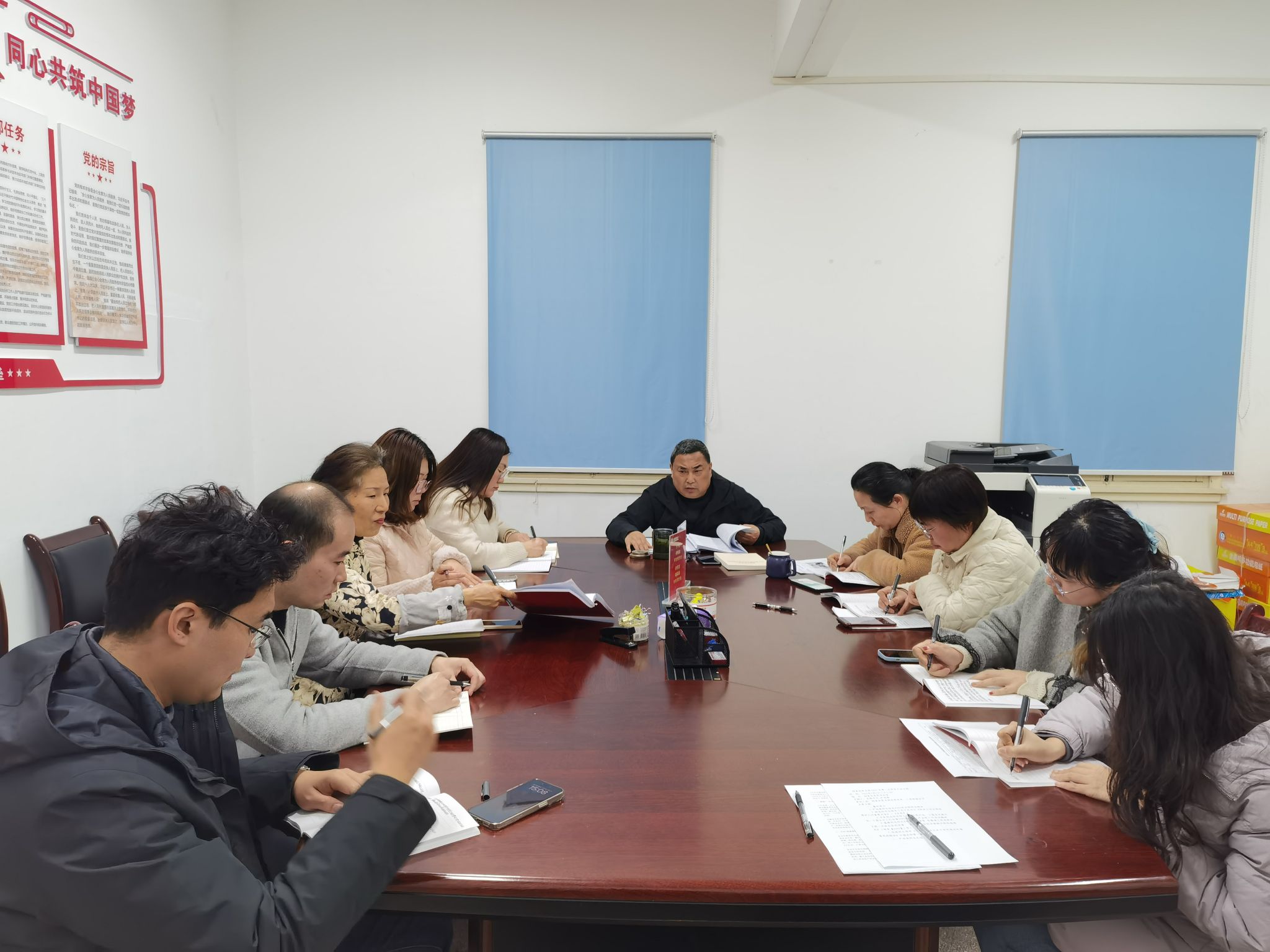 3月19日下午,财务处党支部组织召开"一月一主题"专题学习会,党支部书记严迎春主持会议,支部全体党员及入党积极分子参会。