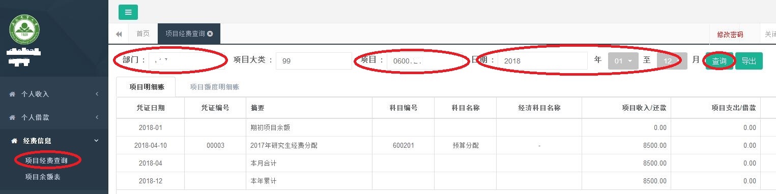 研究生经费查询步骤:先登录学校数字化校园信息门户(http://i.ahau.edu.cn),点击“财务系统”,进入财务网上查询系统后,依次点击“经费信息”、“项目经费查询”、“部门”、“项目”,在“项目”中,“项目名称”显示导师姓名的项目,即为导师的研究生经费(见下图)。