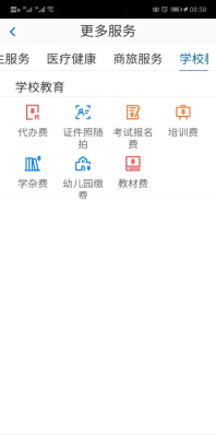 2.选择“更多”菜单下的“学校教育”项下的“代办费”;