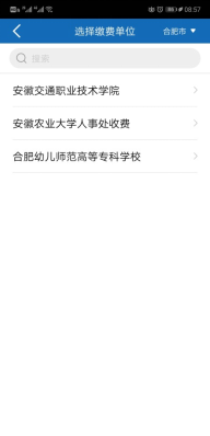 3.在“选择缴费单位”界面点击“安徽农业大学人事处收费”;